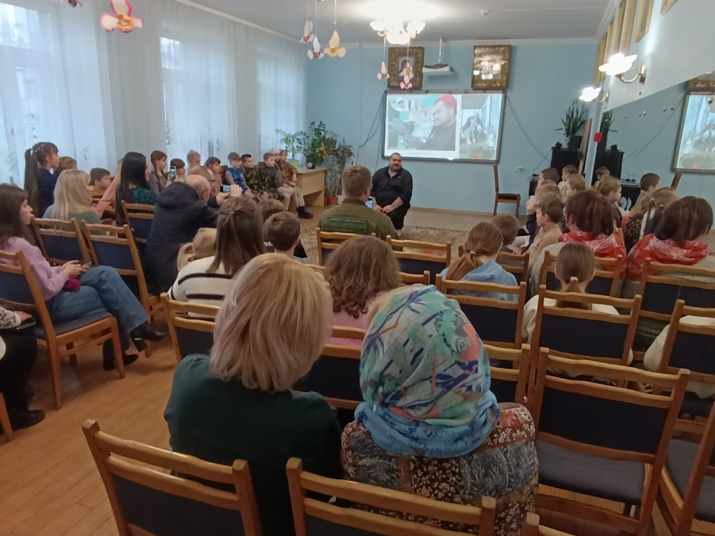Акция началась с проведения экологического часа в зале школы, который прошёл в непринужденной обстановке. Старшие ребята подготовили интересную информацию о птицах. Вели программу Игорь Алексеев и Наталья Диточенко. Наташа- выпускница Воскресной школы, уже учится в университете, но приехала и с удовольствием поддержала акцию. Замечательно, что на вопросы о жизни птиц младшие ребята отвечали уверенно, хотя представленный на карте маршрут перелёта наших птиц вызвал у многих удивление. Многие из ребят и не представляли, как далеко отправляются птицы из Беларуси. Загадки о зимующих птицах разгадали быстро, наградой за самые быстрые ответы были сладкие призы. А вот как и чем подкармливать зимующих птиц оказалось совсем непростым вопросом. Но теперь уже наши ребята точно знают, что можно вносить в меню для птиц, а что- нельзя. А помог в этом вопросе разобраться самый известный в Бобруйске доктор Айболит ветеринар Григорий Белягов. Вопросов у ребят к Доктору Айболиту было бесчисленное множество, делились с Доктором самым сокровенным , проблемы с питомцами были практически у всех. С интересом участники акции и зрители посмотрели видео ролик православного театра «Убрус» «Покормите птиц зимой».