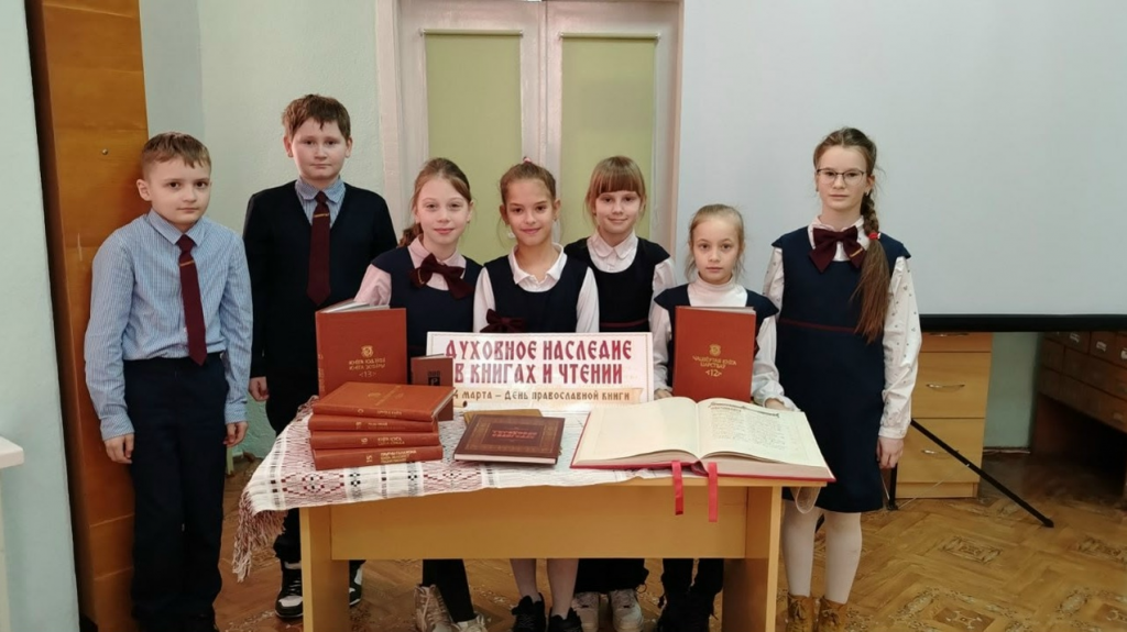 В преддверии праздника День православной книги в городской библиотеке № 8 имени Евфросинии Полоцкой совместно с Духовно — просветительским центром Свято- Елисаветинского храма г. Бобруйска для учеников 3 «Г» и 1 «Г» классов ГУО «Гимназия № 3 им. митрополита Филарета (Вахромеева) г. Бобруйска» прошло книжное досье «Библиотека: вчера, сегодня, завтра», приуроченное ко Дню православной книги. Дети послушали рассказ о том, как к нам пришла книга, какой она была тысячи лет назад и как менялась в разные исторические эпохи. Ребята узнали о различных формах книги: глиняных табличках, книгах — свитках китайских книгах- связках, рукописных книгах на пергаменте, современных бумажных и электронных книгах.