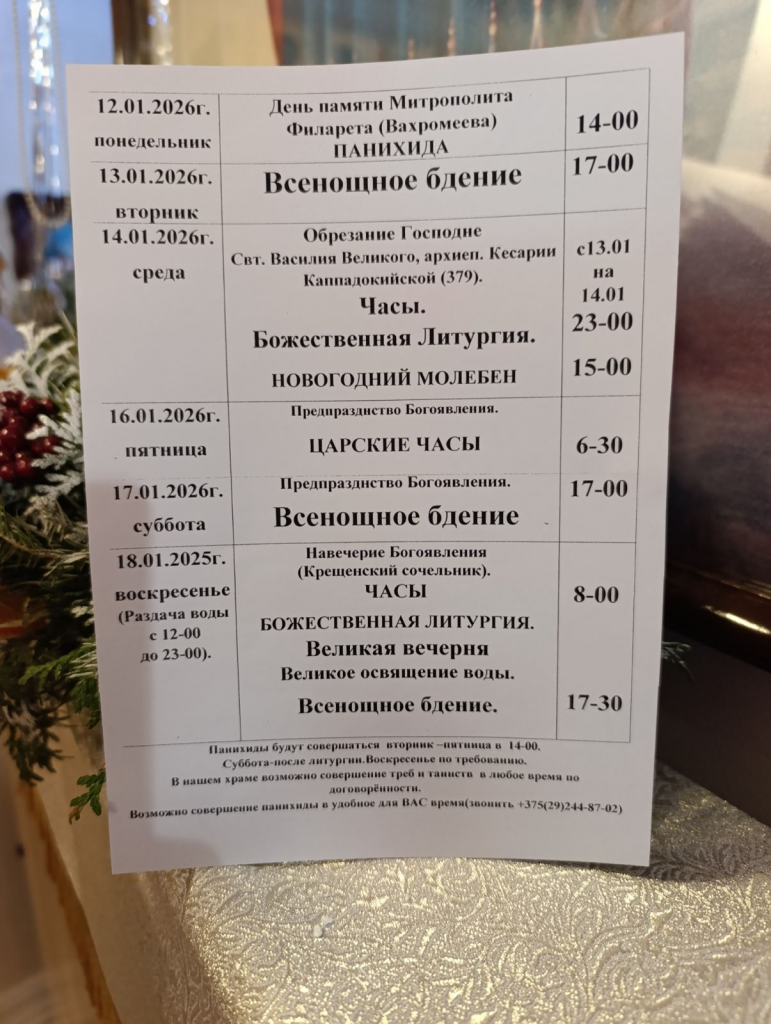 РАСПИСАНИЕ БОГОСЛУЖЕНИЯ
